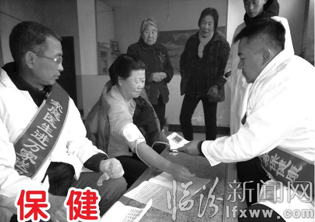 临汾新闻网讯 近日,大宁县太古卫生院医护人员和村级卫生室的村医组成的家庭医生签约服务团队活跃在太古乡各村开展健康扶贫工作,为贫困户宣传讲解健康知识、精准扶贫的政策,并进行义务诊疗,守好健康这道门,做到小病不出村,大病不出乡,深受广大村民的欢迎。图为该卫生院医护人员在坦达村史武忠家为其家属测量血压。(冯振兴)