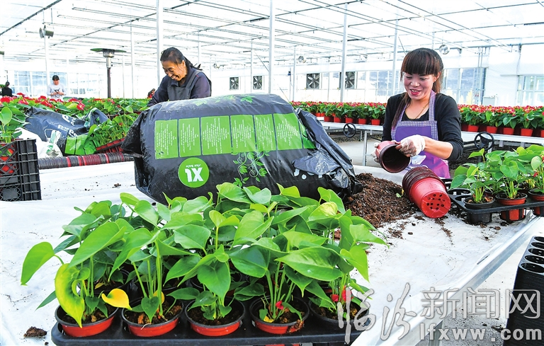 临汾新闻网讯 近日,大宁现代农业花卉双创示范园区的工作人员正在为花卉更换腐殖土。