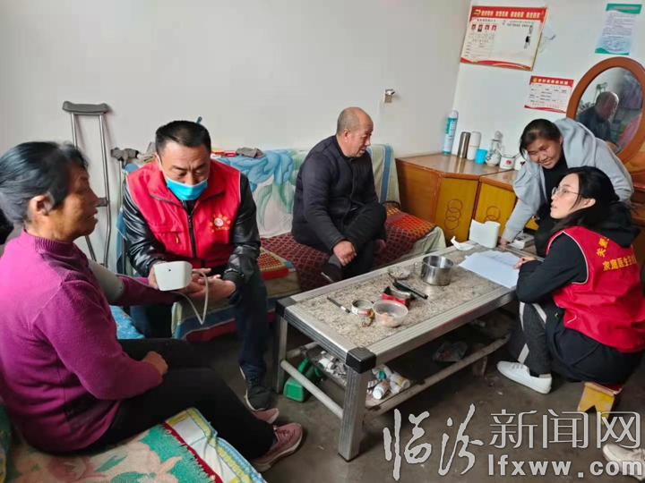 临汾新闻网讯 3月18日,大宁县医疗集团太古卫生院医务人员进村入户对老百姓进行医疗服务。期间,医务人员在农户家进行疾病预防知织讲解,并对村民进行血压、身高、体重等常规检测,对发现有高血压、糖尿病症状的村民,劝其及早防治。图为医务人员李宏平和王芳到坦达村冯宝辰家给老年人测量血压。