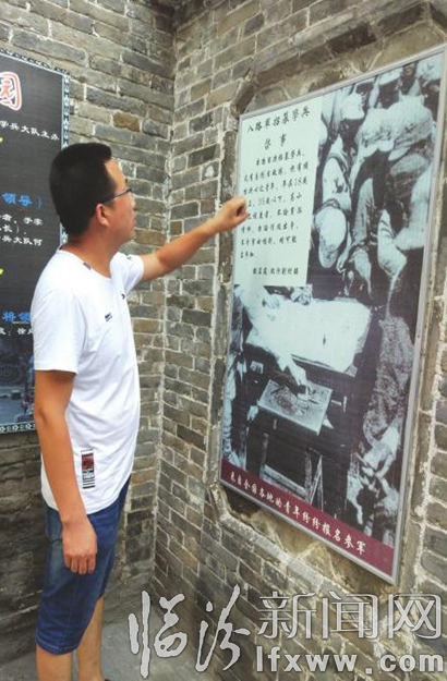 工作人员秦斌介绍学兵大队老照片。