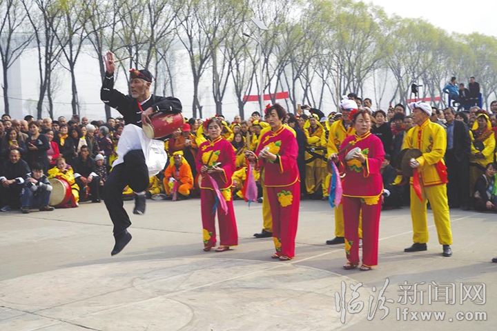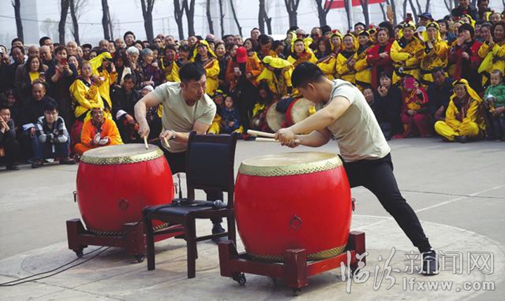 中国民族击打乐协会会员、尧都区金鼓吹打乐传承人卢兆平表演的绛州鼓征服了观众,让村民们领略了不同的锣鼓艺术。