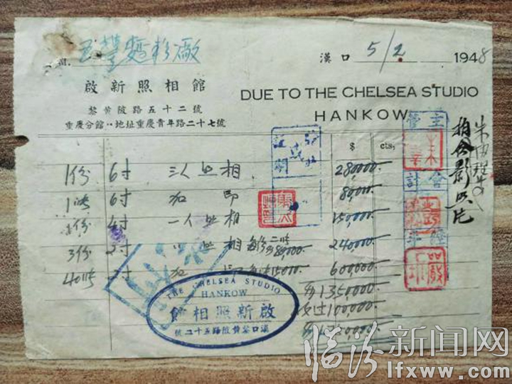 段延峰说,这张发票虽小,但包含的内容非常丰富,不仅有财务管理相关信息,而且记载的“黎黄陂路”很有来头,这条路是湖北省武汉市江岸区的一条街道,建于1900年,当时是光绪二十六年,以辛亥起义领导人黎元洪名字命名(黎元洪是湖北黄陂人,故称“黎黄陂”),2016年黎黄陂路整顿修复完毕,改造升级后变身步行街,并被打造为武汉市首个历史风貌步行街。发票上启新照相馆创办于1929年,该名称一直沿用至今。