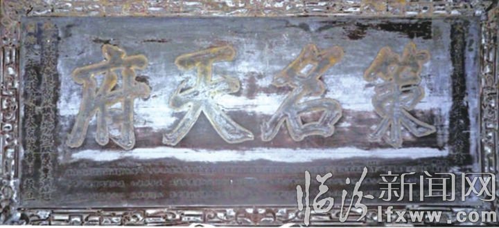 临汾新闻网讯 在市作协副主席、洪洞作家董爱民所著的书中收录了一块“策名天府”的牌匾。这块牌匾的收藏者是洪洞县一农村的贺氏老人,匾上“策名天府”四个大字题写者是从洪洞走出的清代诗人、韵律学家董文涣。