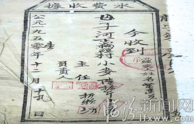 临汾新闻网讯 近日,我市市民段延峰向记者展示了他收藏的一张新中国成立初期的“水费收据”,这张收据距今已近70年。