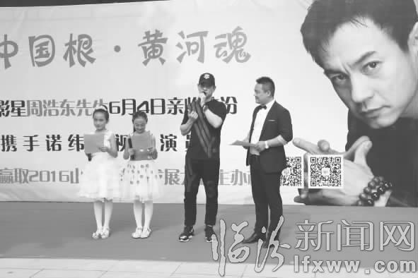 临汾新闻网讯 6月4日8时30分,助力临汾赢取2016年山西省旅游发展大会主办权”公益活动在临汾锦悦城举行。著名演员周浩东携手小演员们一起为此次活动呐喊助威,号召大众为“中国根·黄河魂”投出宝贵一票。