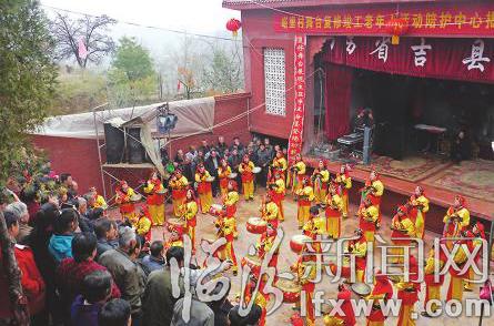当天是峪里村舞台修复竣工庆典、老年活动陪护中心揭牌的日子。霍州白龙女子威风锣鼓队也来到该村助兴。