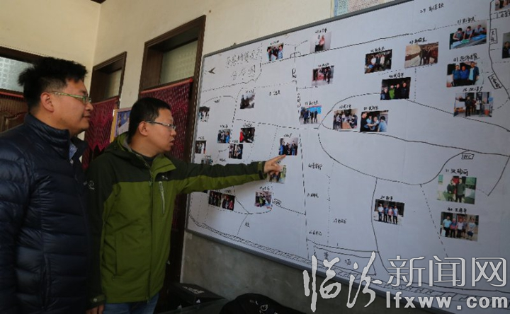 穆光远(右一)花费了2个月时间整理出的贫困户家庭情况地图
