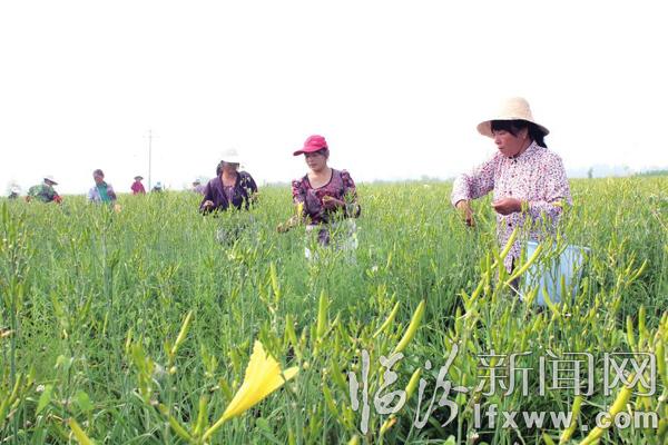 临汾新闻网讯 近年来,浮山县张庄乡城南村王峰合作社采取“专业合作社+基地+农户”的经营模式,种植300亩黄花菜,年产干黄花菜6000公斤。目前每斤黄花菜可卖到20元,预计300亩可收入120万元,成为当地农业增效、农民增收的主导产业。 图为日前村民在基地采摘黄花菜。 卫琦 摄