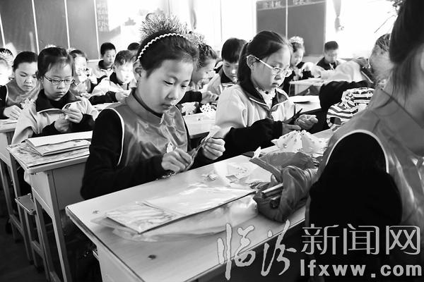 临汾新闻网讯 浮山县素有“剪纸之乡”的美誉。为了使剪纸这一民间艺术更好的传承和发展,该县把剪纸教学带进课堂,并邀请民间剪纸艺人为学生们授课。该项活动的开展深受孩子们的喜爱,既丰富了他们的课余文化生活又为浮山民间剪纸艺术的发展打下了良好的基础。图为城关小学四年级学生在老师的示范下完成剪纸作业。 卫琦 摄