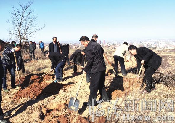 临汾新闻网讯 日前,浮山县国土资源局一行30余人在该县天坛山森林公园开展了植树活动。活动中,工作人员拿起铁锹、镐头等工具,挖坑的挖坑,铲土的铲土,大家一边植树,一边互相交流着经验。大家纷纷表示,希望以此次活动为契机,动员更多的人为美化环境出一份力。(郭红梅)