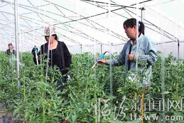 临汾新闻网讯 为推动设施蔬菜产业发展,快加蔬菜新品种、新技术、新材料推广应用步伐,日前浮山县举办设施蔬菜“三新”技术培训观摩会,来自全县从事设施蔬菜种植的种植大户、专业合作代表共80余人,参加了蔬菜种植现场观摩及设施蔬菜栽培技术讲座等交流活动。图为该县设施蔬菜技术服务团队的技术人员正在给西红柿授粉。