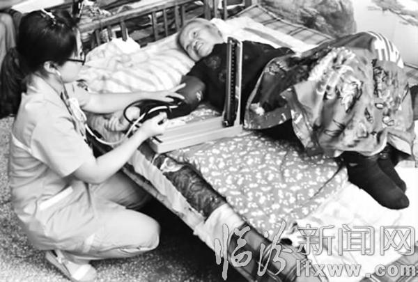临汾新闻网讯 近日,浮山县东张乡卫生院把基本公共卫生服务项目同“献爱心、送健康”和“健康知识进万家”等活动相结合,组建基本公共下乡医疗服务团队,专门对该乡25个行政村的特殊人群进行免费上门体检、个体化健康教育、随访、健康指导等服务,并对长期卧床病人进行康复训练和理疗治疗,根据病人个体情况制订随访治疗方案,由专人定期进行回访和指导。据悉,此项工作进一步提高了居民的健康生活水平和自我保健能力,使基本公共卫生服务常态化、均等化。图为医疗服务队的医护人员为卧床病人测量血压。(马华虎 李月玲)