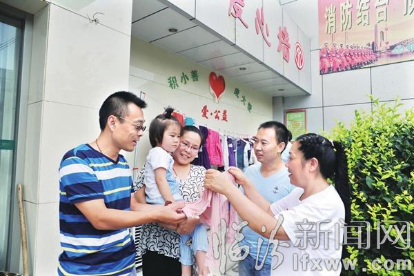 临汾新闻网讯 近日,在浮山县尧山西路的“爱心墙”附近,志愿者正在为孩子试穿爱心人士捐赠的衣物。