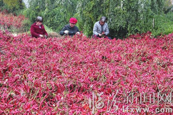 图为该村村民正在分拣刚收获的辣椒。 赵志英 摄