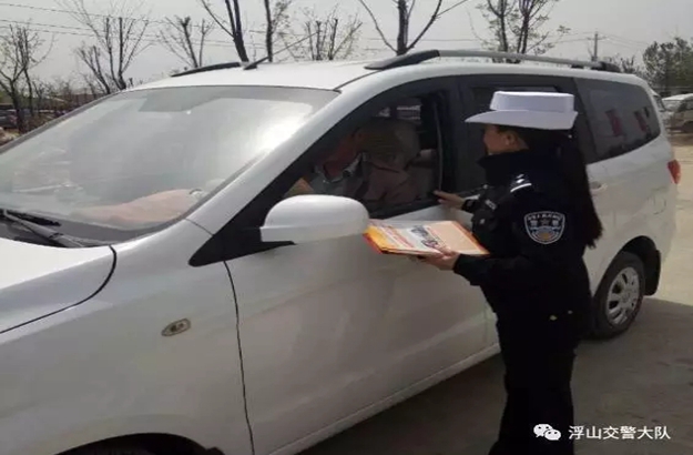 宣传民警向车辆驾驶人、群众发放宣传资料