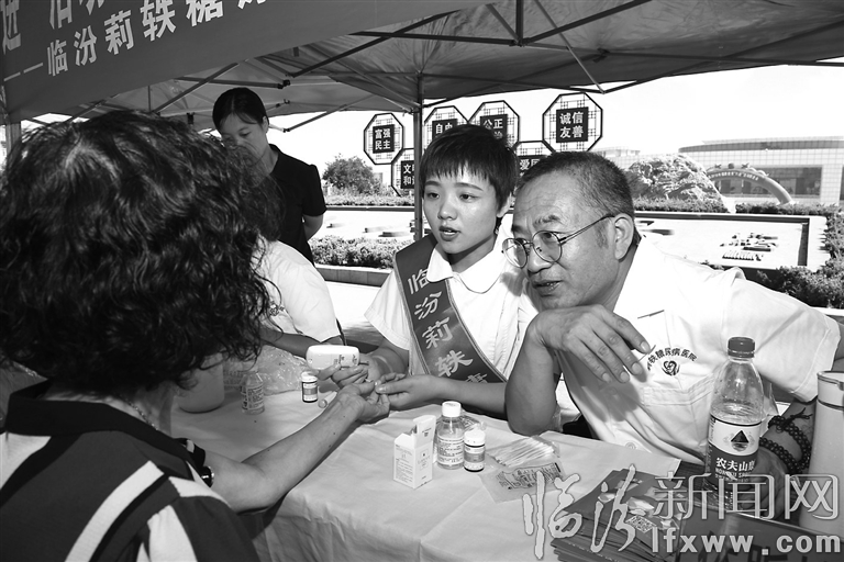 临汾新闻网讯 8月20日上午,浮山县在县文体广场举行了健康教育“六进”活动启动仪式。活动现场邀请了市口腔专家、糖尿病专家、眼科专家以及县医疗集团医疗专家开展了义诊活动。图为医疗专家走进公共场所(“六进”之一),正在给过往群众开展义诊。
