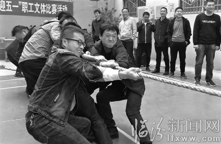临汾新闻网讯 近日,浮山县供电公司举办了职工文体比赛活动,包含拔河、风火轮、斗地主等项目,大家在比赛中得到了放松,增强了凝聚力。图为该公司职工在进行拔河比赛。