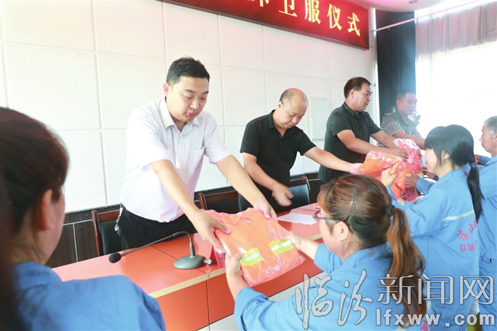浮山农商行向环卫工人捐赠环卫服。通讯员 姚芳 摄