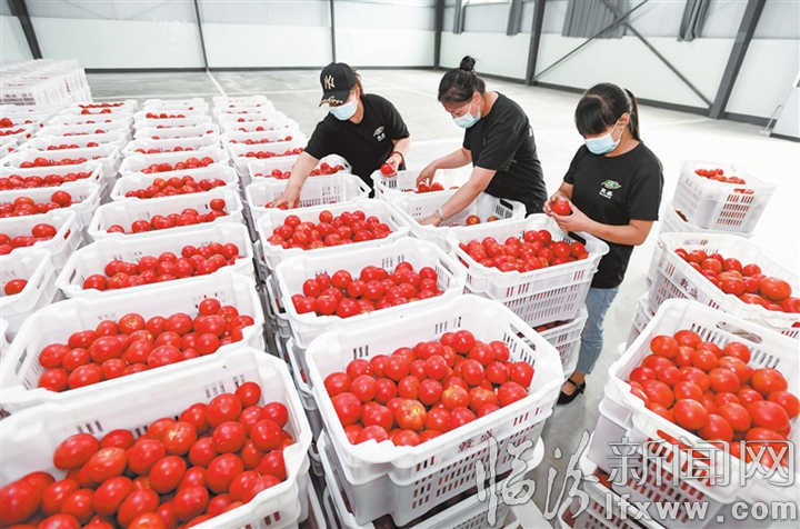 临汾新闻网讯 近日,浮山县敦曹村敦盛食品加工有限公司的工作人员在分拣西红柿。
