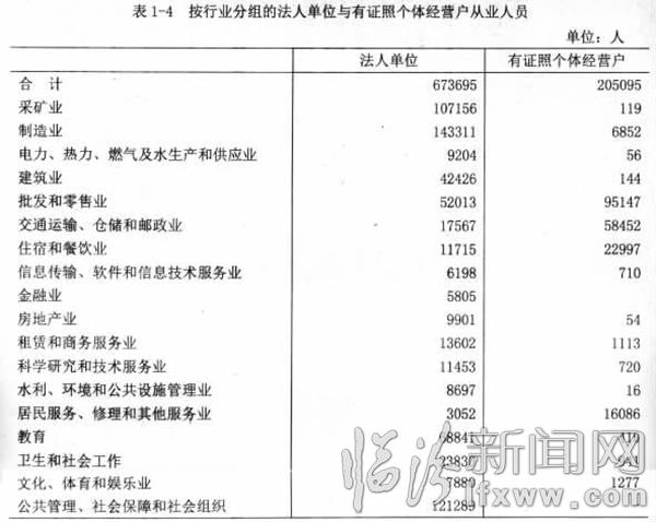 注:表中法人单位从业人员合计数含从事农、林、牧、渔服务业和兼营第二、三产业活动的农、林、牧、渔业法人单位从业人员9755人;有证照个体经营户从业人员合计数含从事农、林、牧、渔服务业活动的个体经营户从业人员1人。