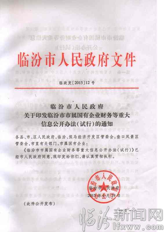 临汾市市属国有企业财务等重大信息