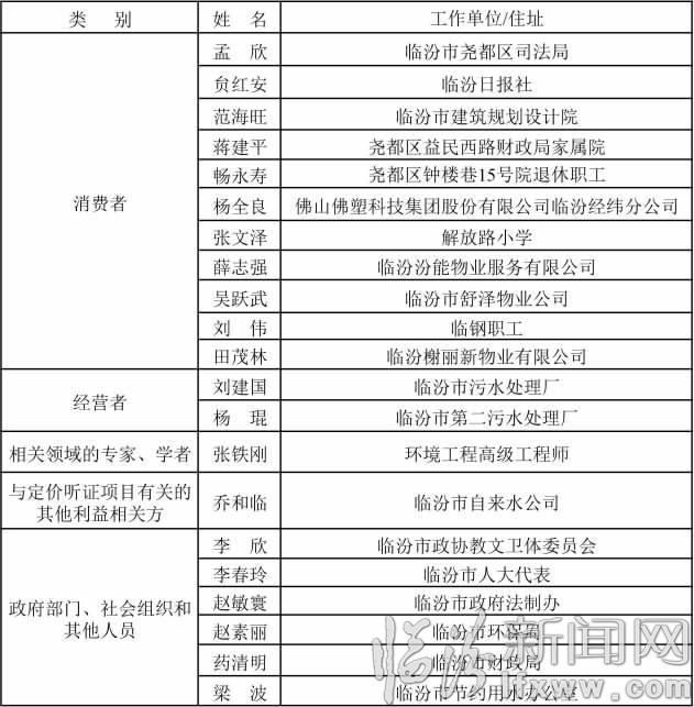 二、听证会地点:临汾市政府大院东楼四层会议室