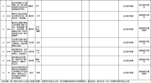 中央环境保护督察移交举报案件临汾市边督边改情况表