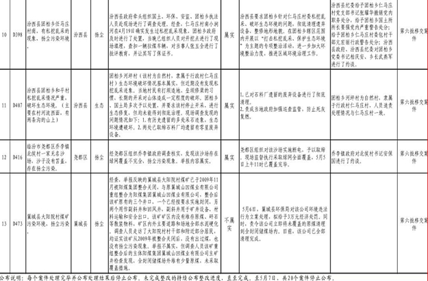 中央环境保护督察移交举报案件临汾市边督边改情况表