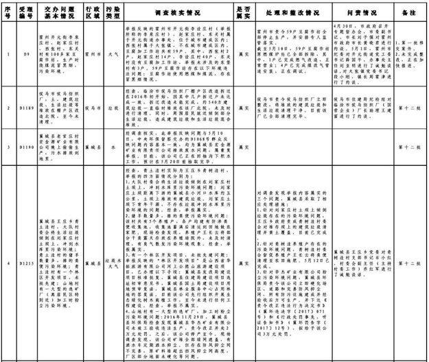 中央环境保护督察移交举报案件临汾市边督边改情况表