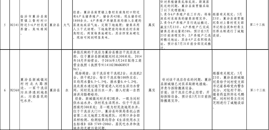 临汾市关于中央环境保护督察移交举报案件边督边改情况通报
