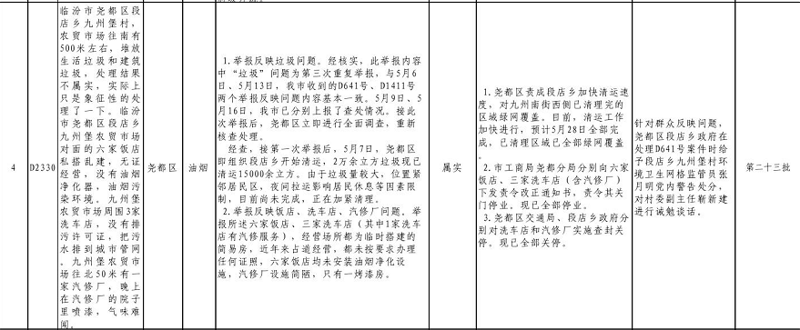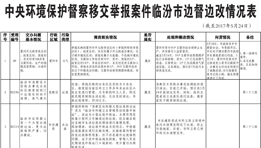 中央环境保护督察移交举报案件临汾市边督边改情况表