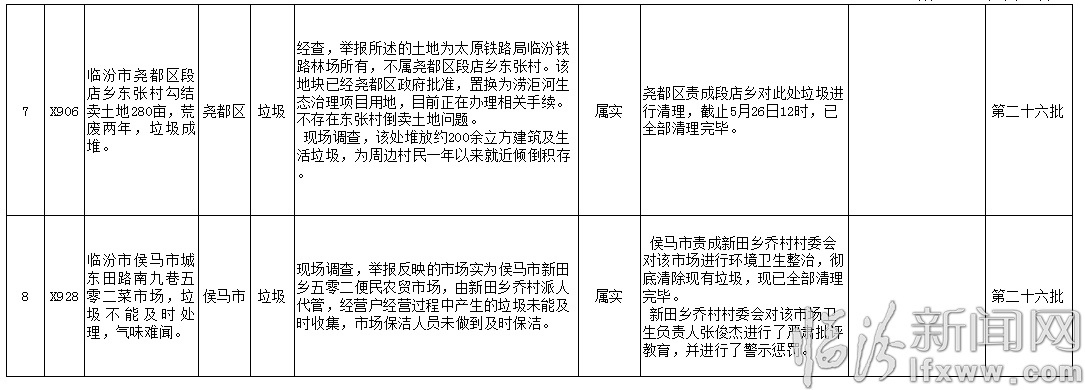 临汾市关于中央环境保护督察移交举报案件边督边改情况通报