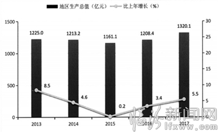 图1 2013-2017年全市地区生产总值及其增长速度