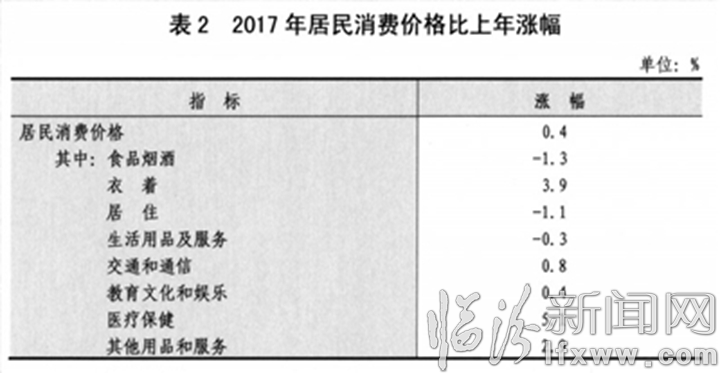 表2 2017年居民消费价格比上年涨幅