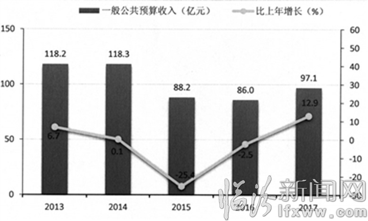图4 2013-2017年一般公共预算收入及其增长速度