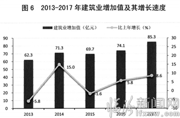 图6 2013-2017年建筑业增加值及其增长速度