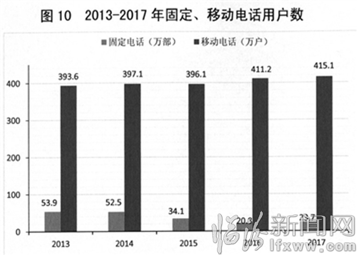 图10 2013-2017年固定、移动电话用户数