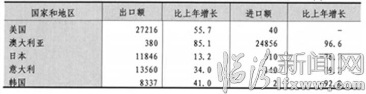表12 2017年与临汾有贸易往来的主要国家和地区进出口情况