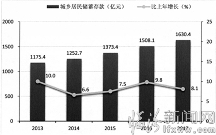 图11 2013-2017年城乡居民储蓄存款余额及其增长速度