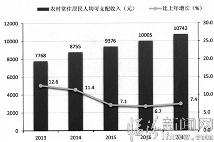 图13 2013-2017农村常住居民人均可支配收入及其增长速度