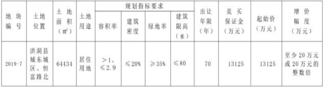 四、本次挂牌出让的详细资料和具体要求,见挂牌出让文件。申请人可于2019年10月1日至2019年10月28日到洪洞县国土资源交易事务所(洪洞县恒富西街窑上新村)获取挂牌出让文件。
