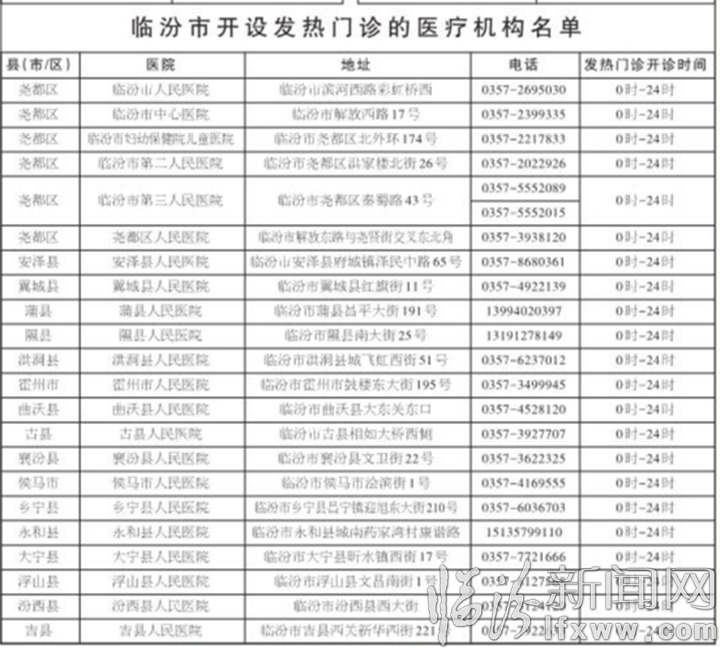 临汾市卫健委24小时值班电话 0357-2091131