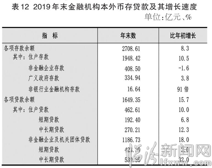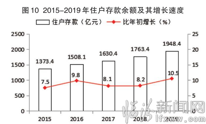 年末住户存款1948.4亿元,比年初增长10.5%。