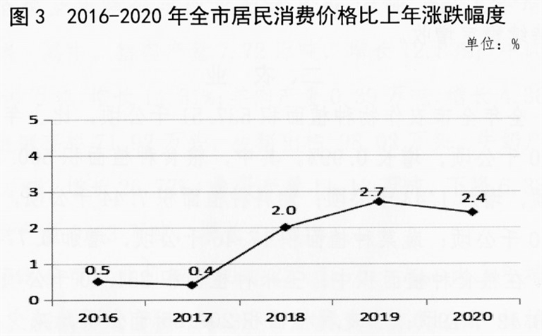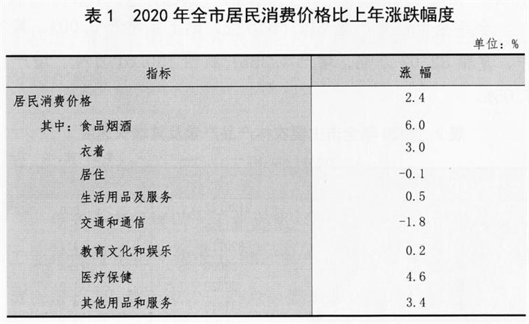 全市居民消费价格比上年上涨2.4%,其中,食品烟酒类价格上涨6.0%。