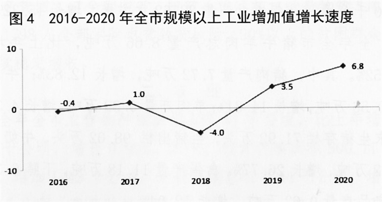 年末全市规模以上工业企业439家。全年全市规模以上工业增加值比上年增长6.8%。其中,采矿业增长5.8%,制造业增长10.4%,电力、热力、燃气及水生产和供应业下降2.5%。
