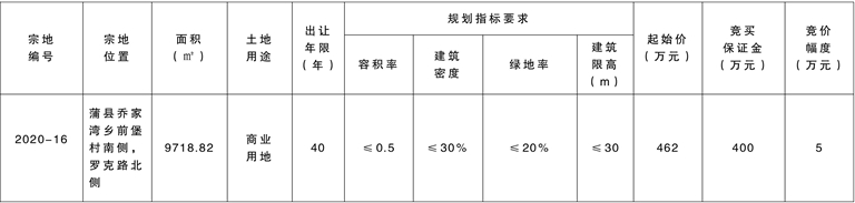 (二)挂牌出让时间为:2021年5月9日—2021年5月18日(节假日不休息)。挂牌出让地点:蒲县自然资源局交易所。