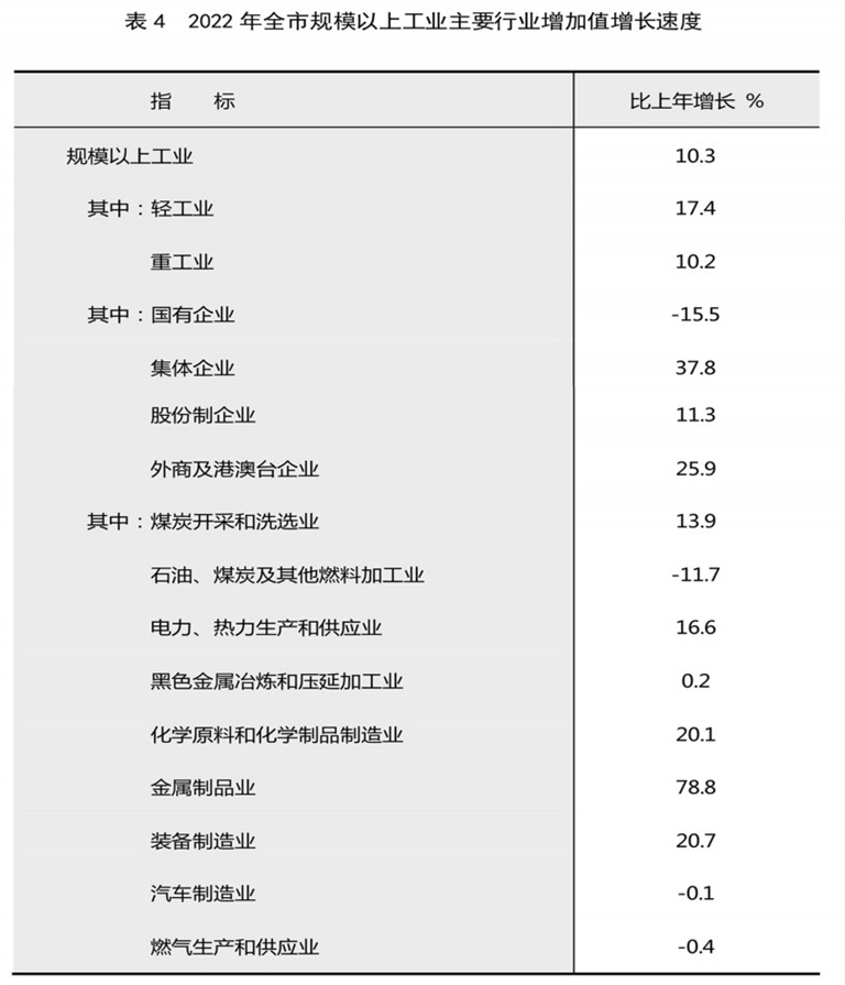 年末全市规模以上工业企业636家。全年全市规模以上工业增加值比上年增长10.3%。其中,采矿业增长13.8%,制造业增长0.5%,电力、热力、燃气及水生产和供应业增长11.9%。