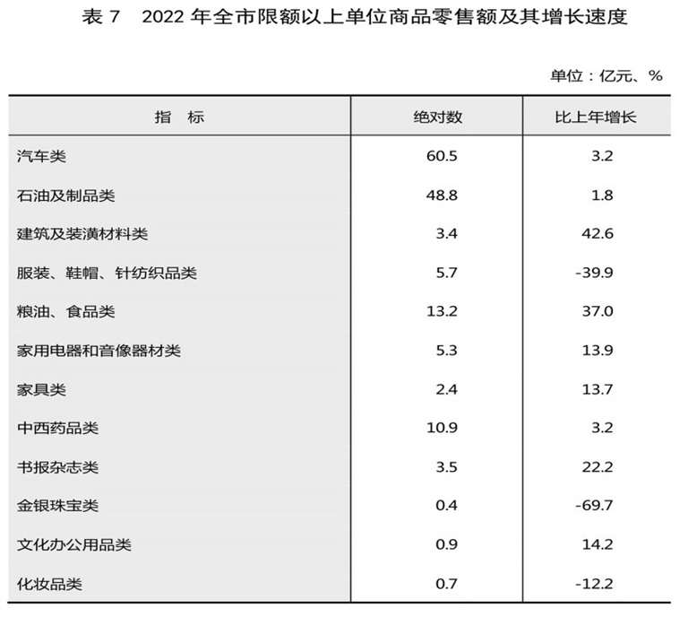 全年全市限额以上单位消费品零售额187.5亿元,比上年增长5.4%。