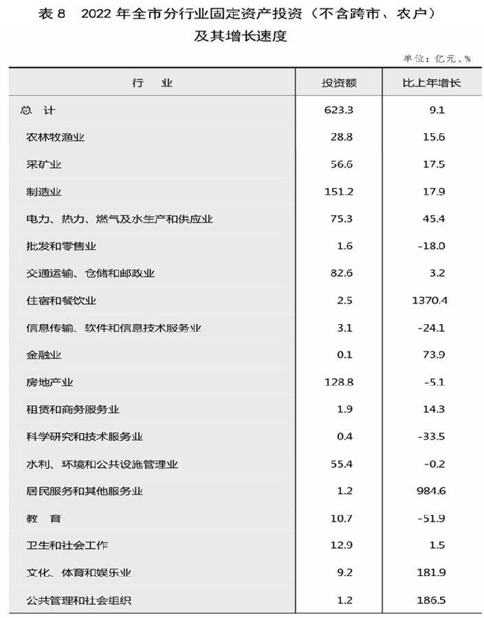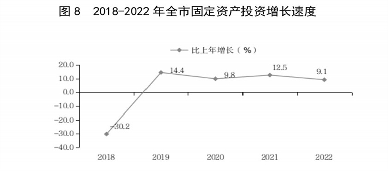 全年全市固定资产投资(不含跨市、农户)比上年增长9.1%。