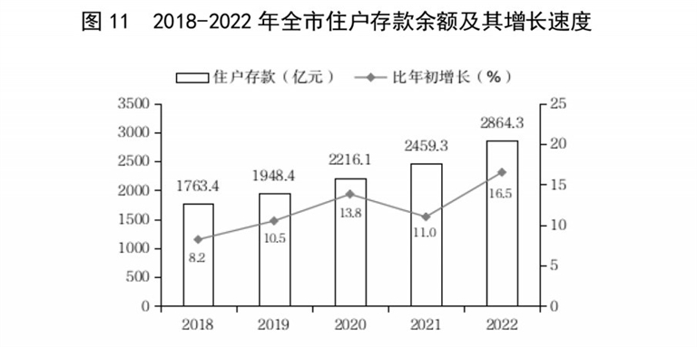 年末住户存款2864.3亿元,比年初增长16.5%。